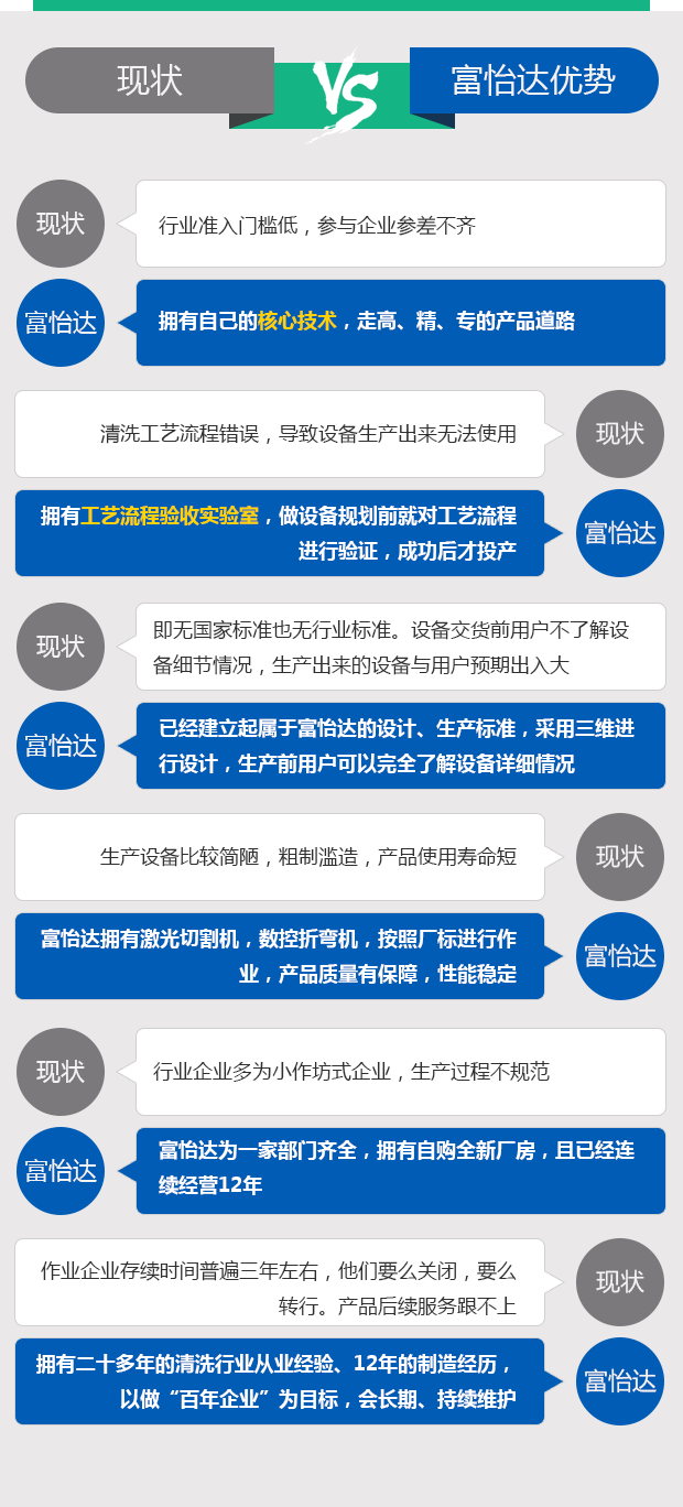 清洗行業(yè)均為行業(yè)專用設(shè)備,目前即無國家標準,也沒有形成行業(yè)標準,所以設(shè)備是各取所長,富一達的自動超聲波清洗機,通過式超聲波噴淋清洗機、往復式旋轉(zhuǎn)噴淋清洗機,渦旋式清洗機均按富怡達廠標標準進行設(shè)計、制作。